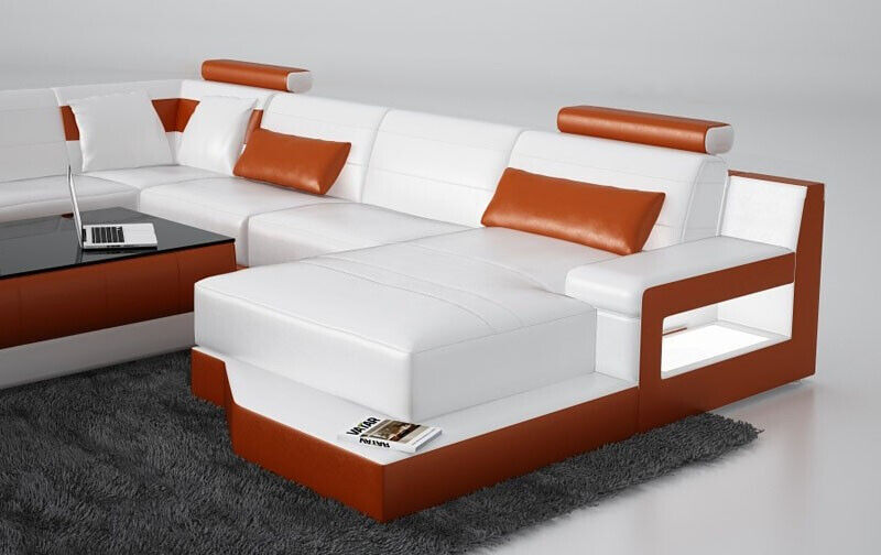 Tato rozkládací obývací souprava U tvaru představuje kombinaci elegancie a komfortu pro vaše obývací prostory. Sedačka a pohovka jsou vybaveny prémiovými koženými vlákny (70% kůže / 30% polyester), které zaručují odolnost a snadnou údržbu. Jejich moderní design v bílé barvě dodá vašemu interiéru svěží a stylový vzhled. Sedačka nabízí šířku cca 275 x 360 cm a hloubku sezení přibližně 56 cm, zatímco pohovka je o něco menší s rozměry cca 194 x 360 x 275 cm. Unikátní tvar U vytváří prostorný rohový prvek, který je ideální pro relaxaci a posezení s rodinou či přáteli.