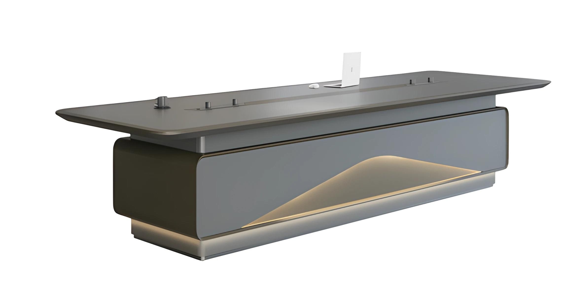 Luxusní konferenční stůl šedý s LED osvětlením a správou kabelů