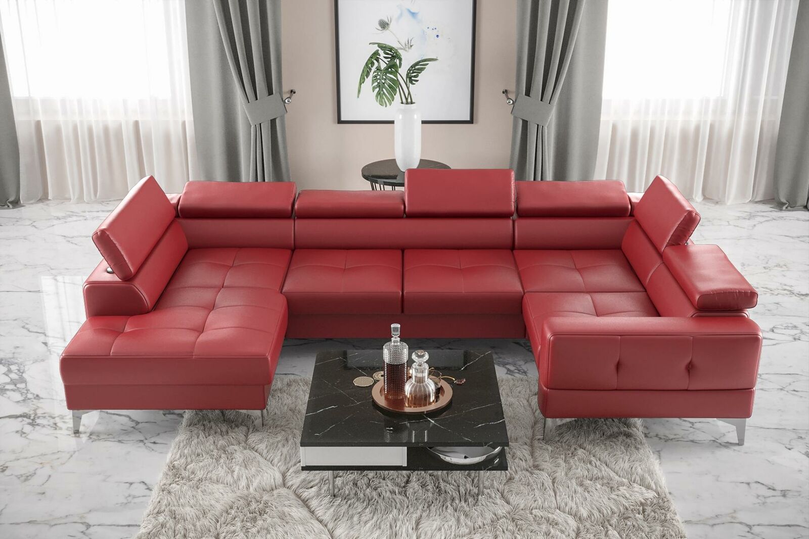 Rohová sedací souprava U tvaru, Moderní čalounění, Nábytek do obývacího pokoje, Současný nábytek.