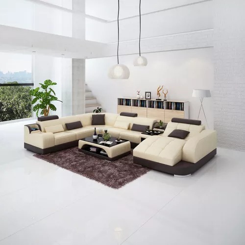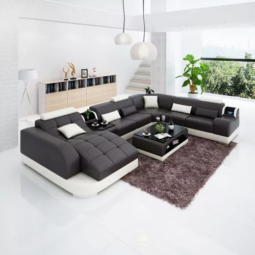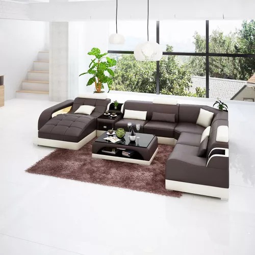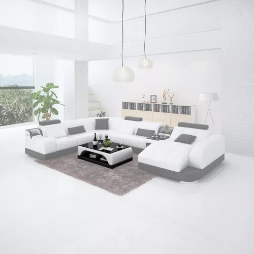 Kupte si rohovou sedačku v U tvaru, levně, s koženým potahem, pohovka do obývacího pokoje.
