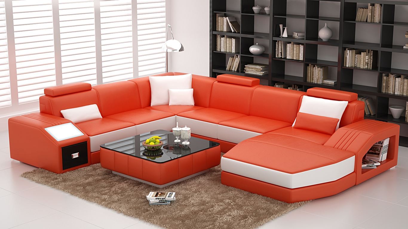 Návrh pohovky Luxus Pohovka Kožená Pohovka Sedák Koutková Sedačka Polštář Rohlík Pohovka Červená