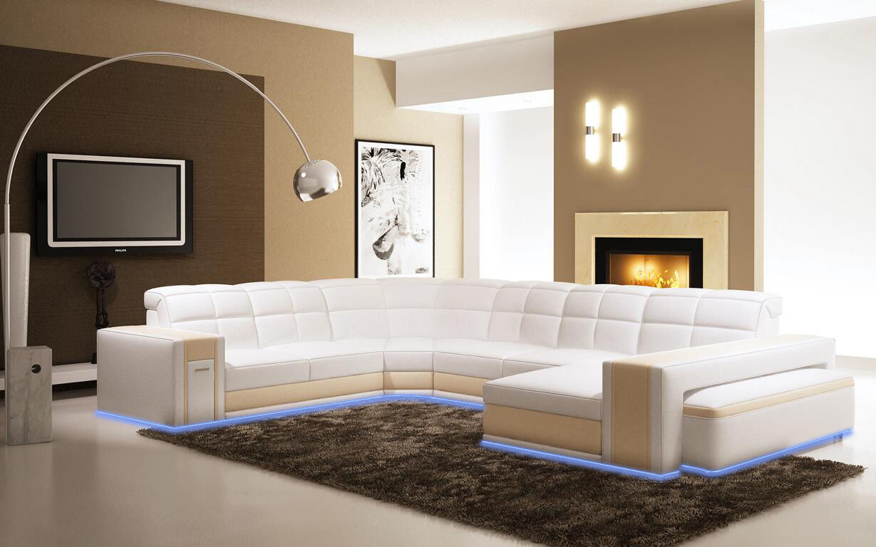 Design rohy Velký polstrovací rohový gauč kůže gauč sada XXL