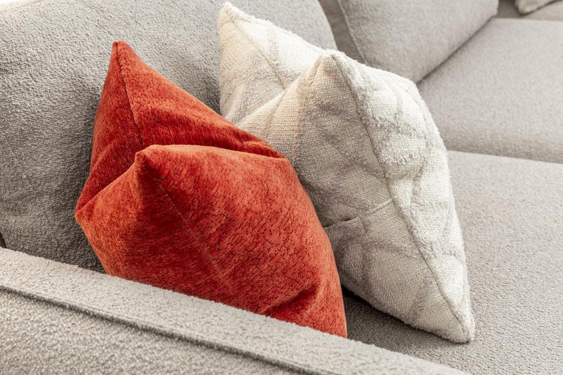 Využijte tuto pohovku ve tvaru U jako středobod vaší obývací místnosti, kde se můžete pohodlně natáhnout a relaxovat po náročném dni. Jeho moderní design a neutrální barva se snadno sladí s různými dekoračními styly, ať už je váš interiér zařízený v minimalistickém, industriálním nebo elegantním stylu. Vyzkoušejte tuto pohovku v U-formě v barvě béžová Luxus moderní obývací pokoj Nový a udělejte ze svého obývacího pokoje místnost, kde se budete cítit opravdu jako doma.