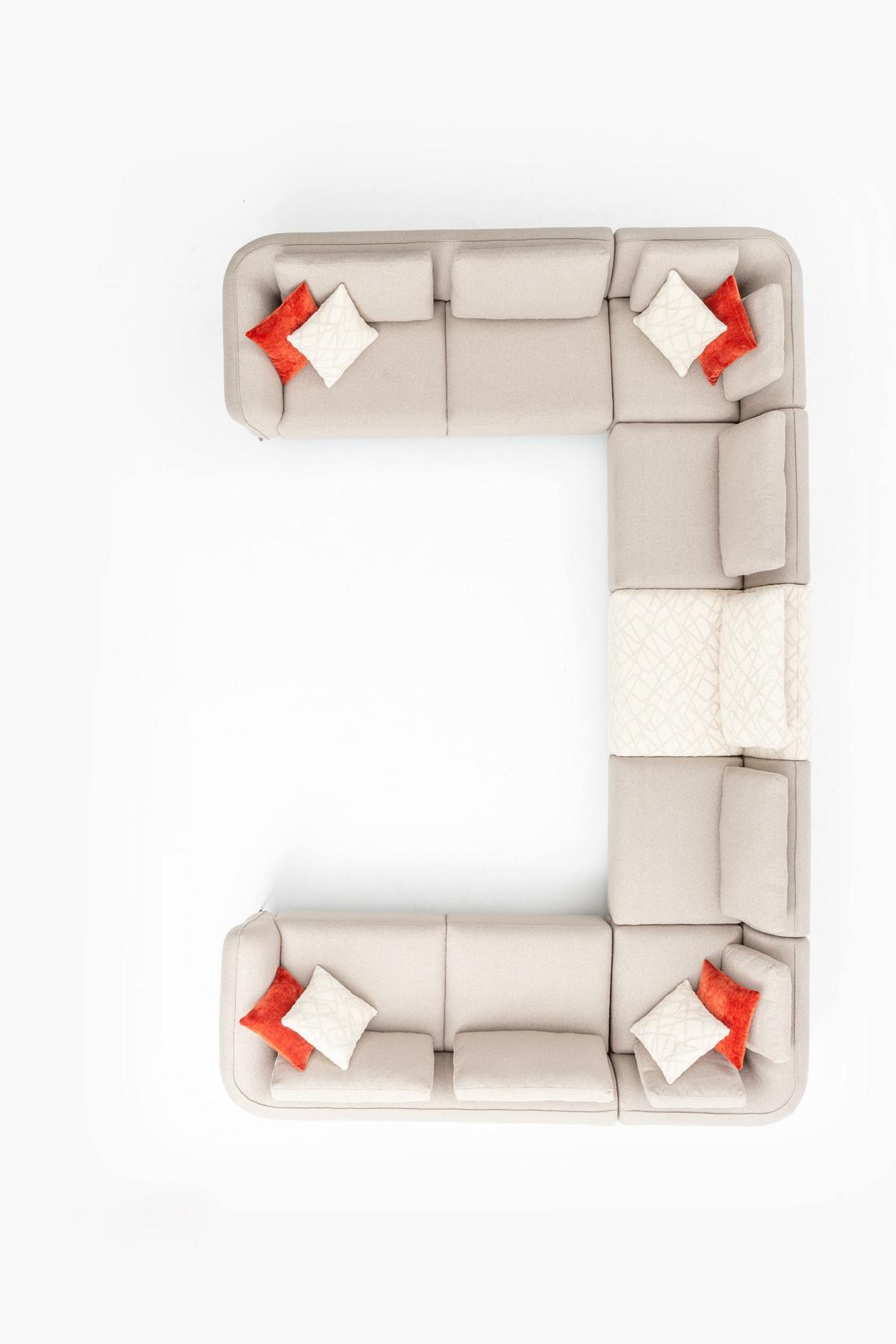 Vyšperkujte svůj obývací pokoj touto krásnou rohovou sedací soupravou Luxus obývací pokoj. Díky svému designu v u-formě se perfektně hodí pro klasické i moderní interiéry. Barva beige je elegantní a snadno kombinovatelná s různými dekoracemi. Tato pohovka se stane centrálním prvkem vašeho obývacího pokoje a poskytne vám a vašim hostům ideální místo pro odpočinek a pohodu. Užijte si relaxaci na této pohovce při čtení oblíbené knihy nebo sledování filmu s celou rodinou. S touto pohovkou získáte nejen pohodlí, ale i stylový kousek nábytku, který dodá váš interiér luxusní a moderní vzhled.