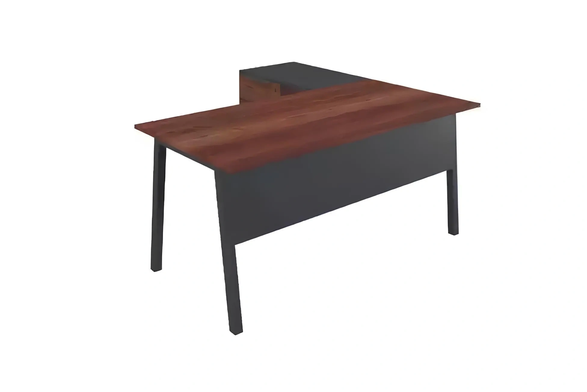 Hnědý rohový stůl s policemi z dřeva do kanceláře