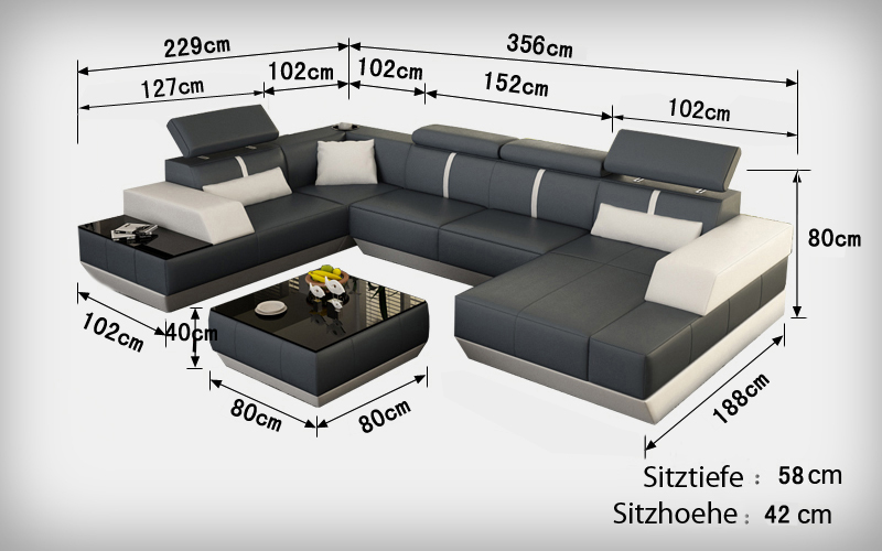 Ecksofa, nábytek do obývacího pokoje, U-foforní rohová sedací souprava