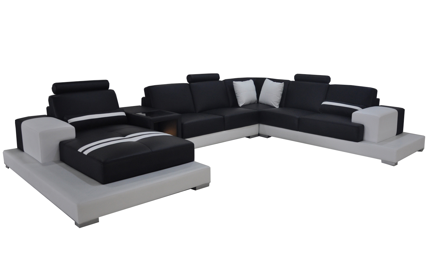Kůžená pohovka, gauč, obývací souprava, U-forma, design moderní, USB