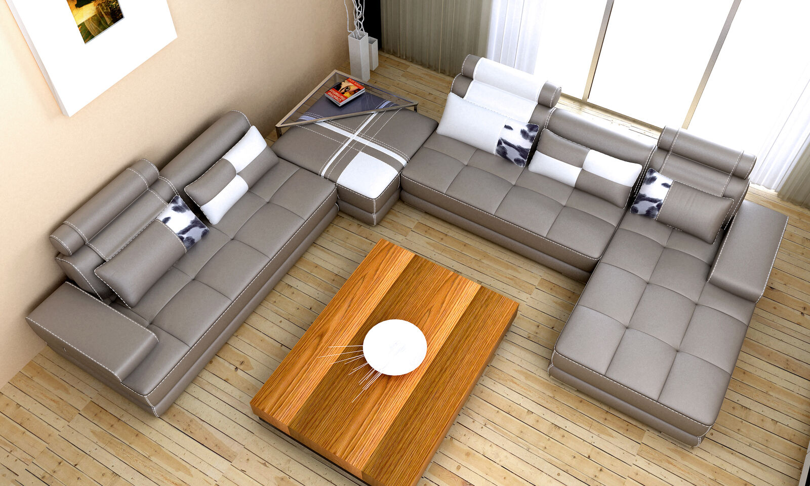 Moderní designový čalouněný obývací kout, kožená sedací souprava, pohovka, gauč, sedačka