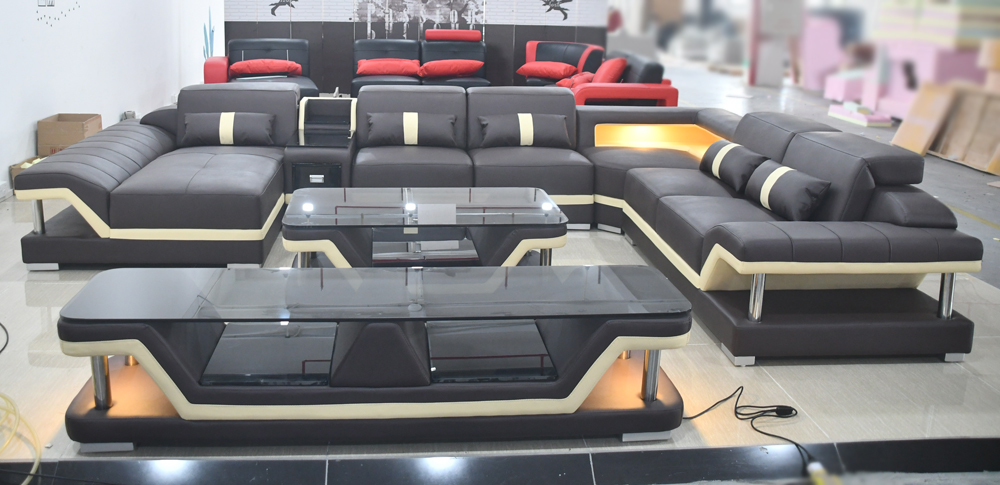 Moderní designový obývací souprava pohovka Rozhodítko Polštářový gauč RTV Stůl z kůže