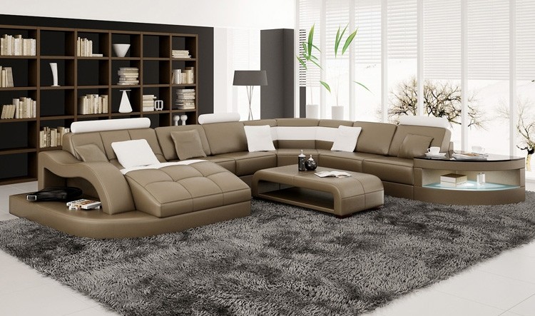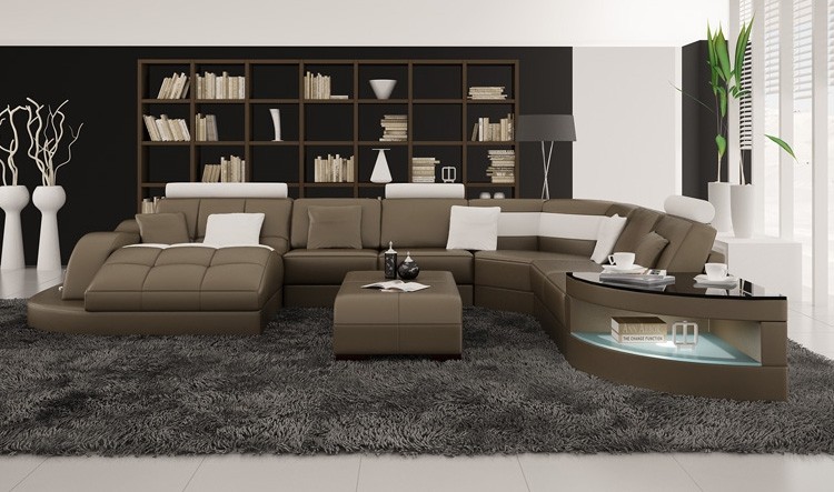 Moderní sedací souprava rohového tvaru U s polstrováním a sedacím rohem + konferenční stolek Kompletní