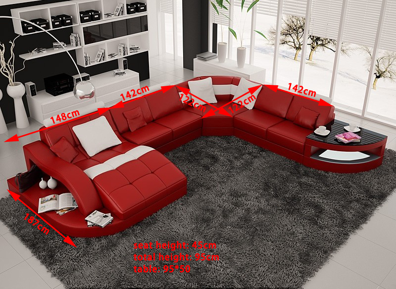 Tato moderní sedací souprava rohového tvaru U s polstrováním a sedacím rohem + konferenční stolek Kompletní představuje kombinaci elegance a pohodlí pro vaše obývací prostory. S rozměry cca. 187 x 412 x 264 cm nabízí dostatek prostoru pro pohodlné posezení, přičemž výška sedu cca. 45 cm zajišťuje maximální komfort. Materiál z prémiového koženého vláknitého materiálu (70% kůže / 30% polyester) dodává soupravě luxusní vzhled a zároveň snadnou údržbu.