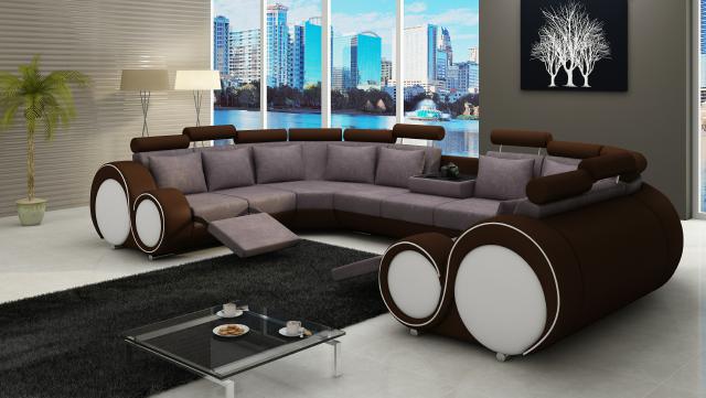 Moderní kožená pohovka, rohová pohovka, křesla XXL, velké obývací stěny + USB