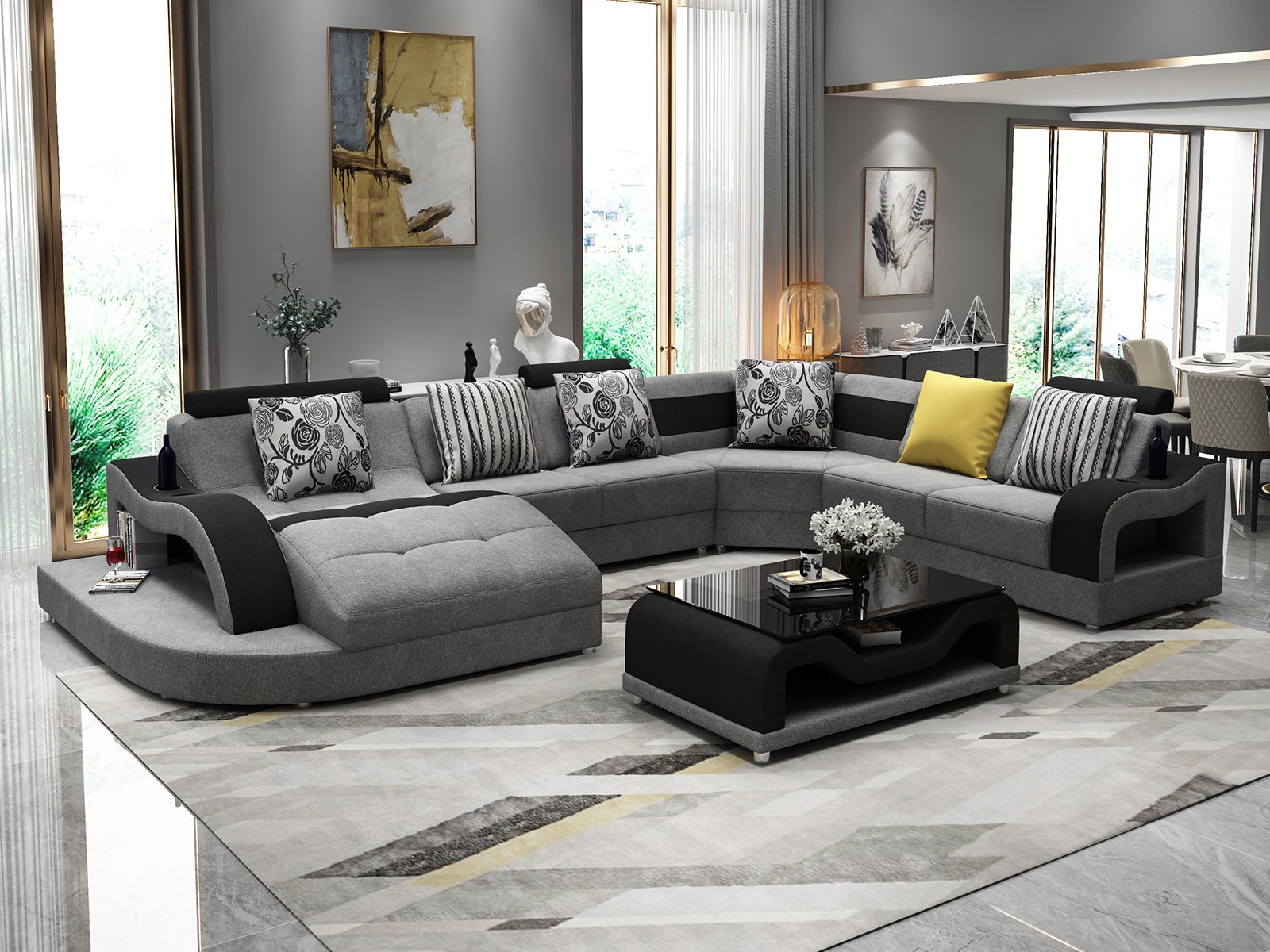 Rohová pohovka ve tvaru U: