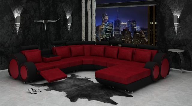 Textilní pohovka s USB XXL obývací souprava látková pohovka Big Polster Sofa U Form Neu je luxusní a moderní pohovka, která přináší pohodlí a styl do vašeho domova. S rozměry cca. 310 x 322 x 210 cm a výškou ca. 84 cm poskytuje dostatek prostoru pro pohodlné sezení. Tato pohovka je vyrobena z prémiového koženého vláknitého materiálu (70% kůže / 30% polyester), který kombinuje eleganci kůže s odolností polyesteru. Díky vestavěnému USB-Klik automatu s 3 zásuvkami máte vždy k dispozici dostatek možností pro nabíjení elektronických zařízení ať už při sledování filmů nebo pracování z domova.