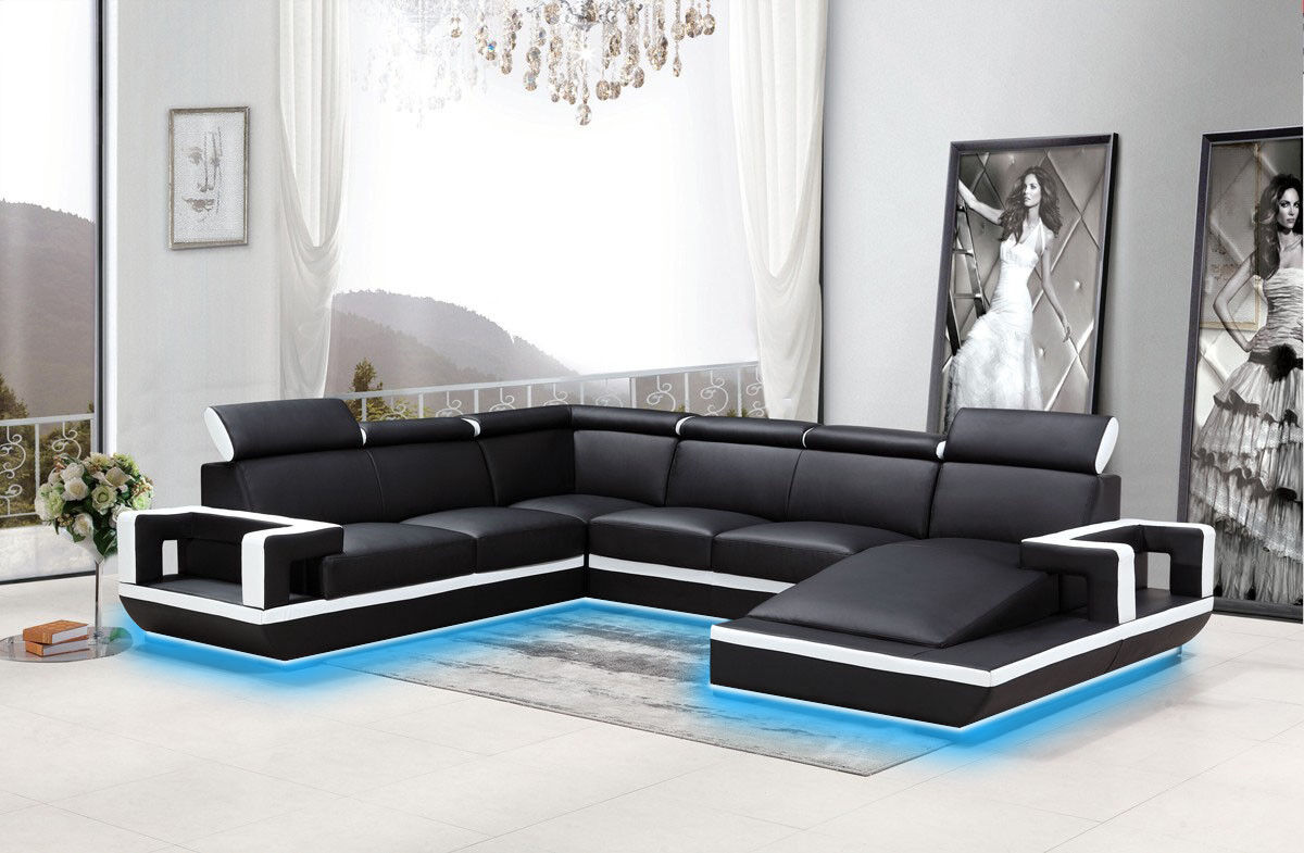 Kupte si U-foermigen rohove sedaci stolek, levnou, kozene vyztuzky, sedaci souprava do obyvaciho pokoje.
