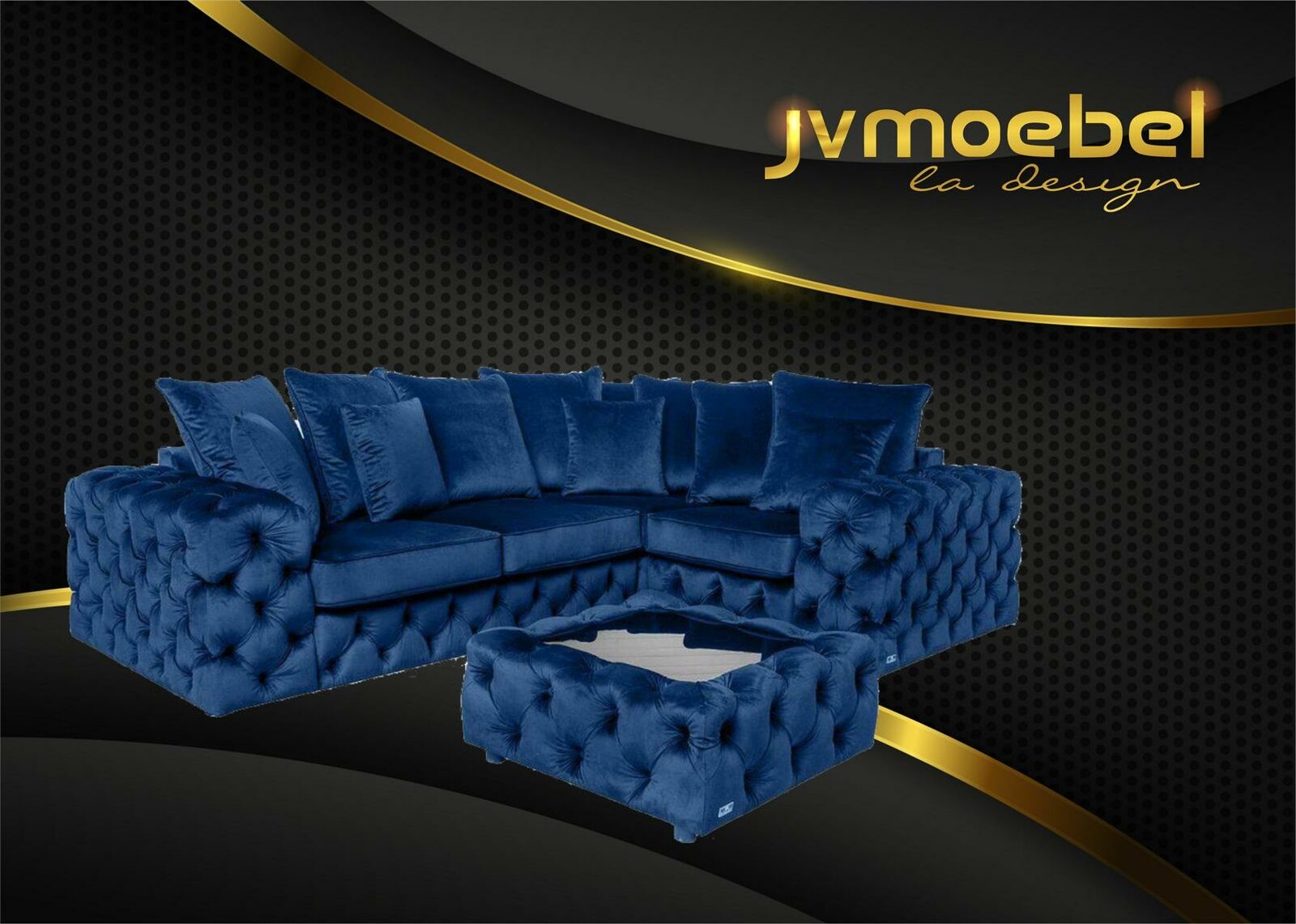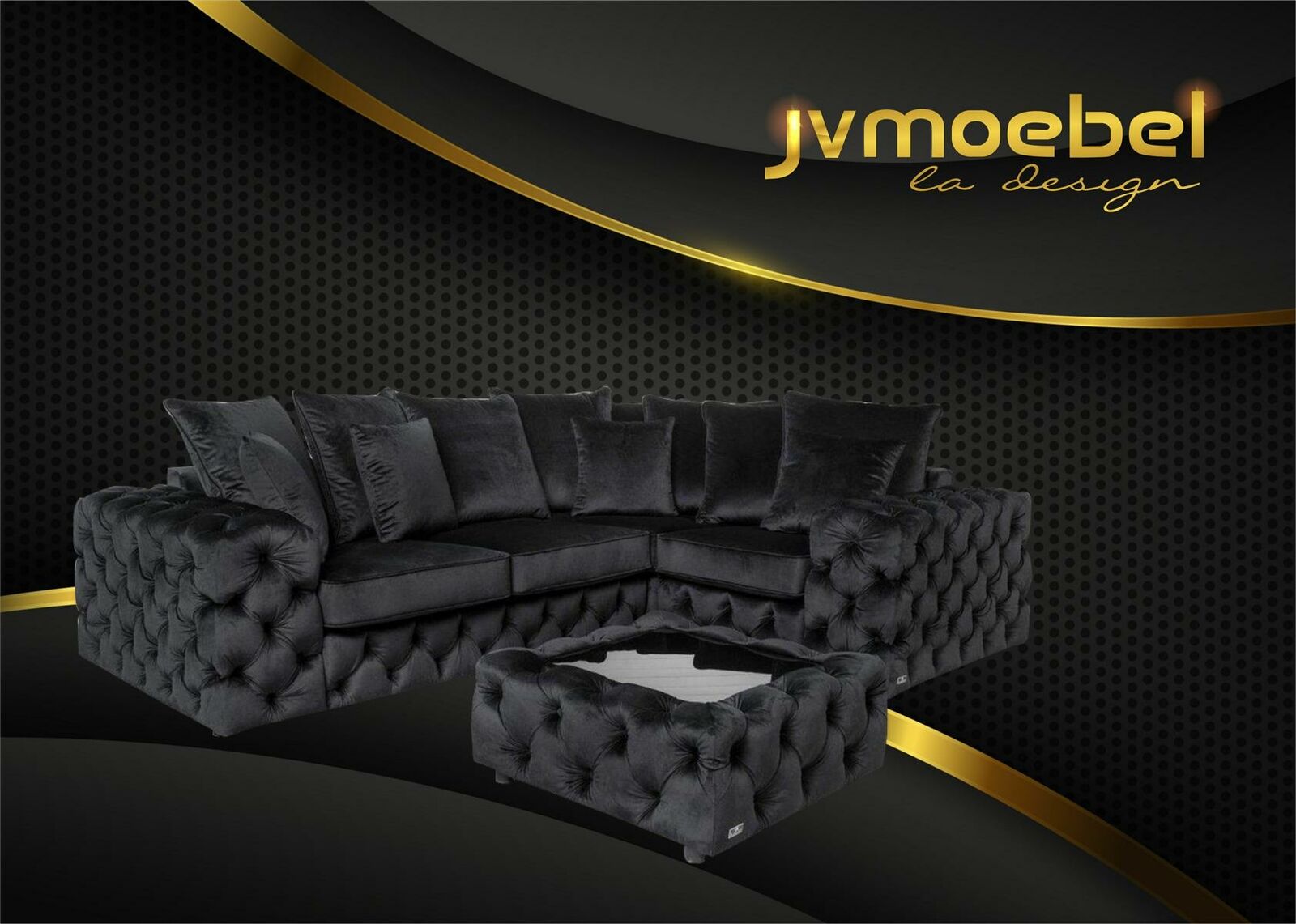 Vnitřní konstrukce z pravého dřeva a možnost volby krystalových kamenů místo knoflíků či dokonce skutečných krystalů Swarovski zvýší luxusní vzhled tohoto nábytkového kusu. Díky odolné látce odolné proti skvrnám můžete mít klid, že váš nový nábytek zůstane krásný i při každodenním používání. Ecksofa Pohovka Gauč Čalouněná sedací souprava L tvar Stůl k pohovce Textilní obývací krajina je ideální volbou pro ty, kteří hledají kombinaci elegance, komfortu a praktičnosti ve svém obývacím prostoru.
