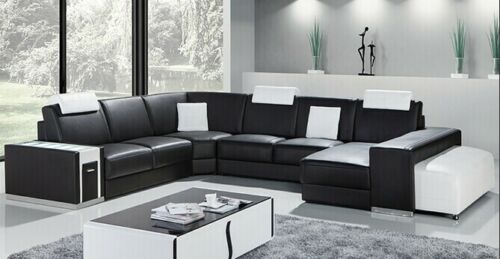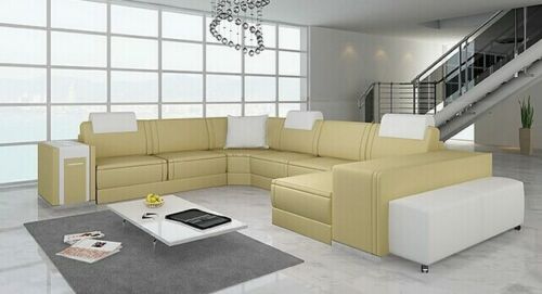 Ecksofa Sofa Wohnlandschaft U Form Polster Couch Ledersofa Hocker -> Rozkládací pohovka, Dvoumístná pohovka, Sedací souprava v U tvaru, Čalouněná pohovka, Kožená pohovka, Pohovka s otomanem
