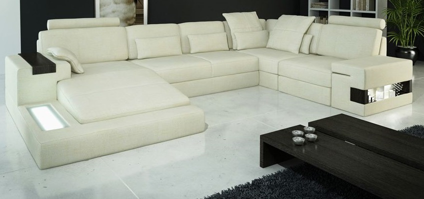 Ecksofa ve tvaru U designová pohovka s čalouněním z textilie nová obývací stěna s lůžkovou funkcí látková