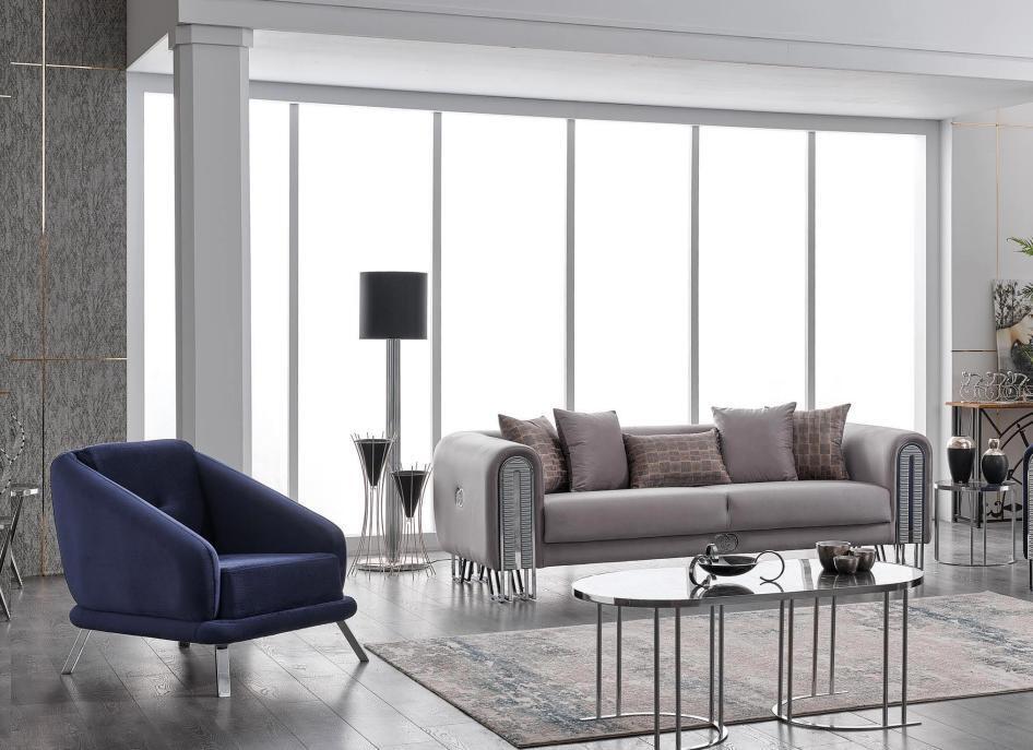 Sofa s konferenčním stolem, pohovka se židlí, obývací pokoj nábytek.