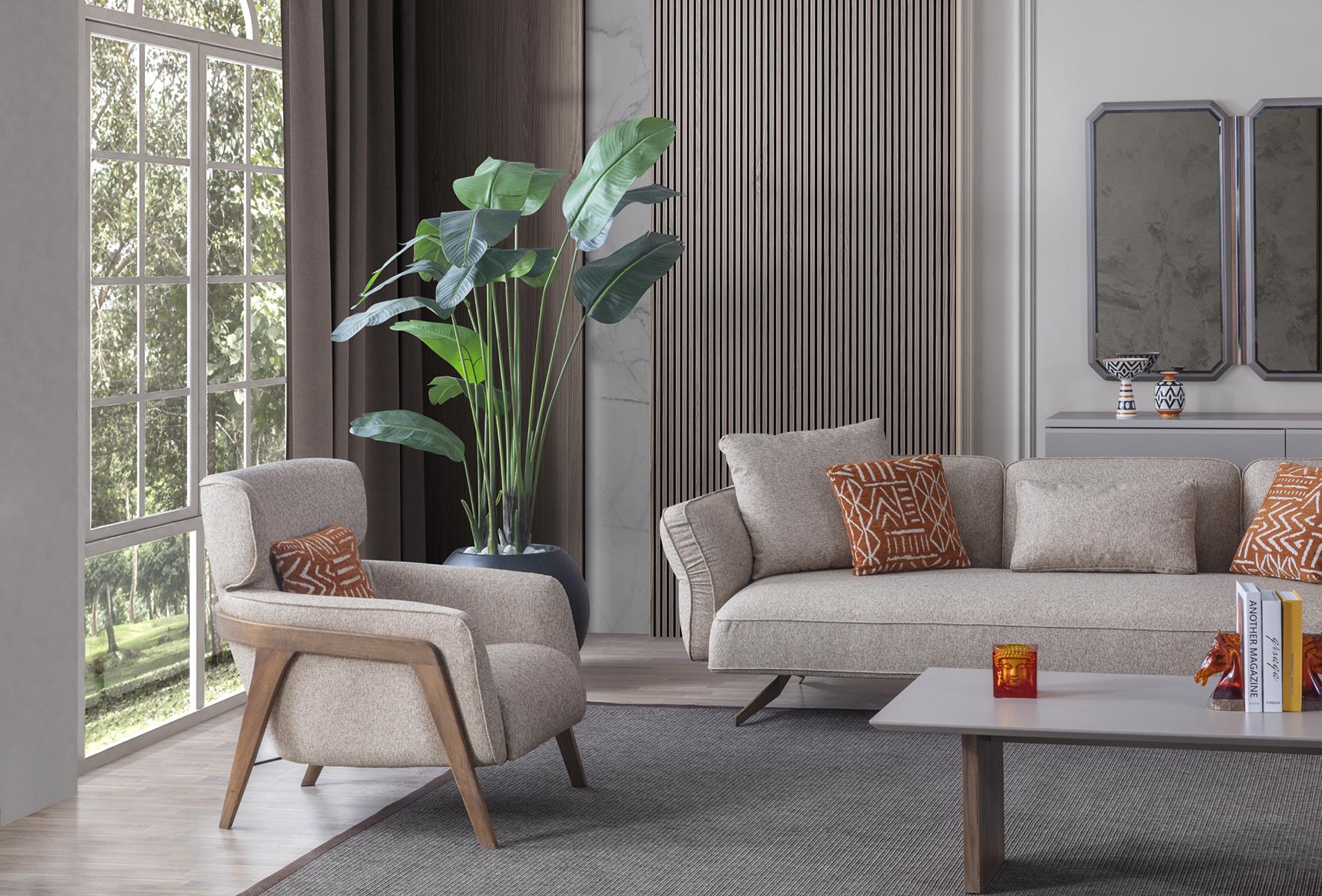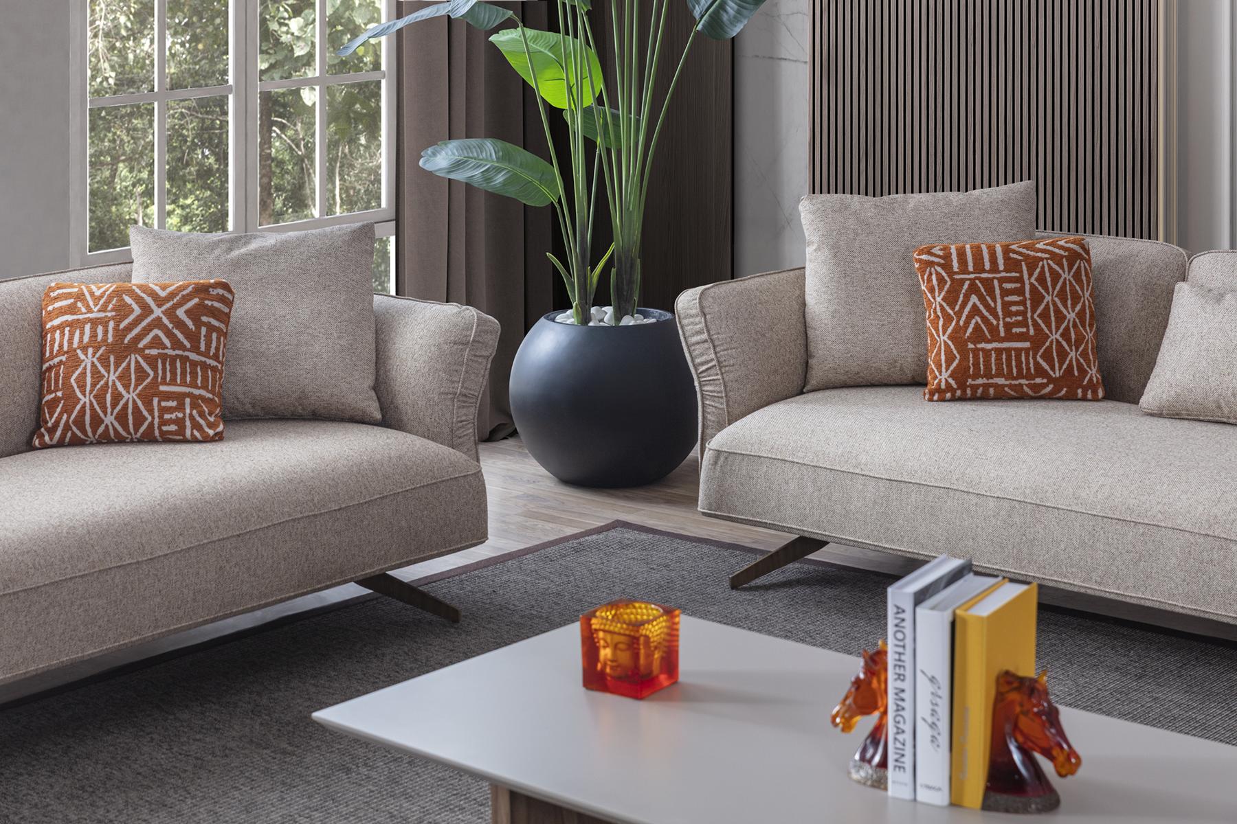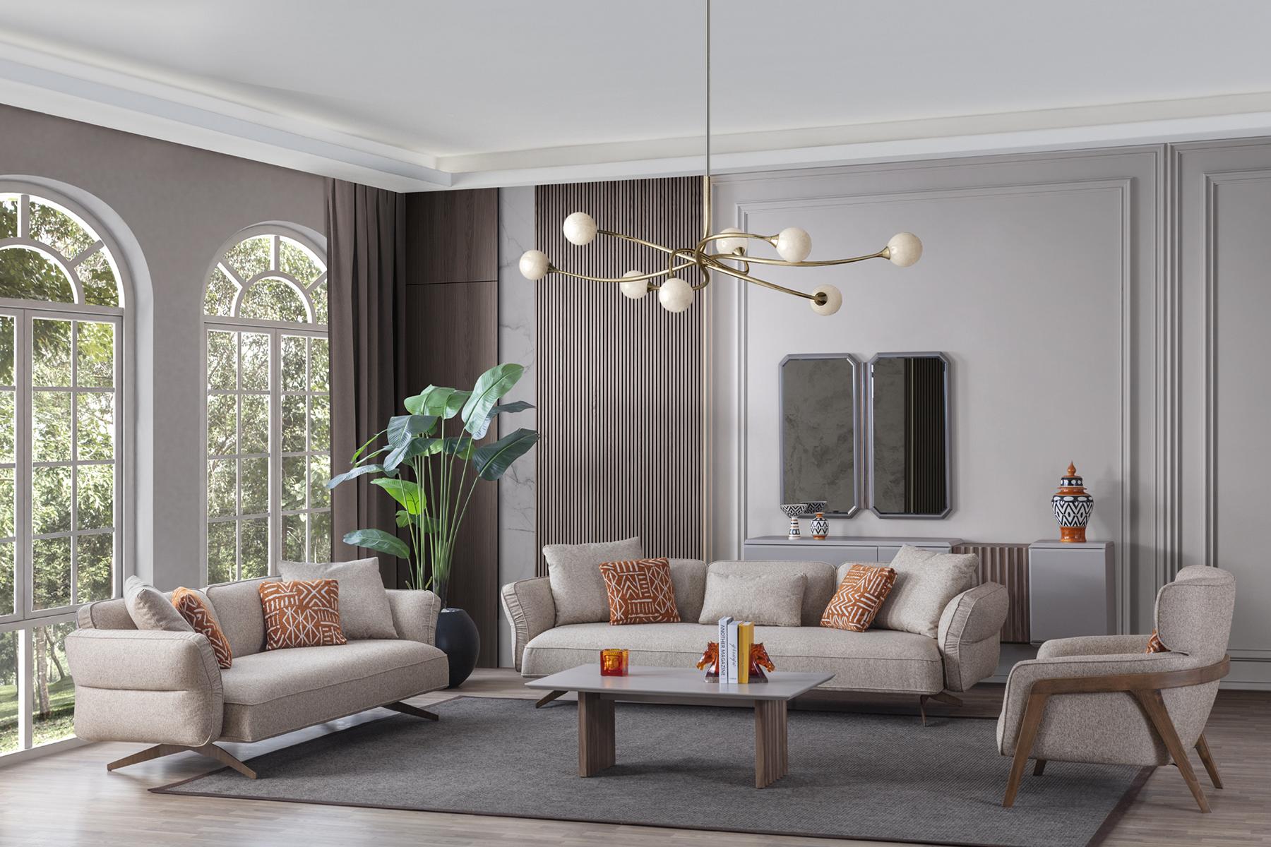 Tento luxusní moderní obývací pokoj set obsahuje 4 kusy nábytku, včetně 4+3 sedačky a konferenčního stolku. Sedačky jsou vybaveny praktickými rozměry pro pohodlné posezení a relaxaci. S jejich vkusným designem a barvou jak na obrázku dodají vaší obývací místnosti elegantní a moderní vzhled. Materiál ze dřeva a textilu zaručuje trvanlivost a snadnou údržbu, čímž se tento nábytek stává skvělou investicí do vašeho domova.