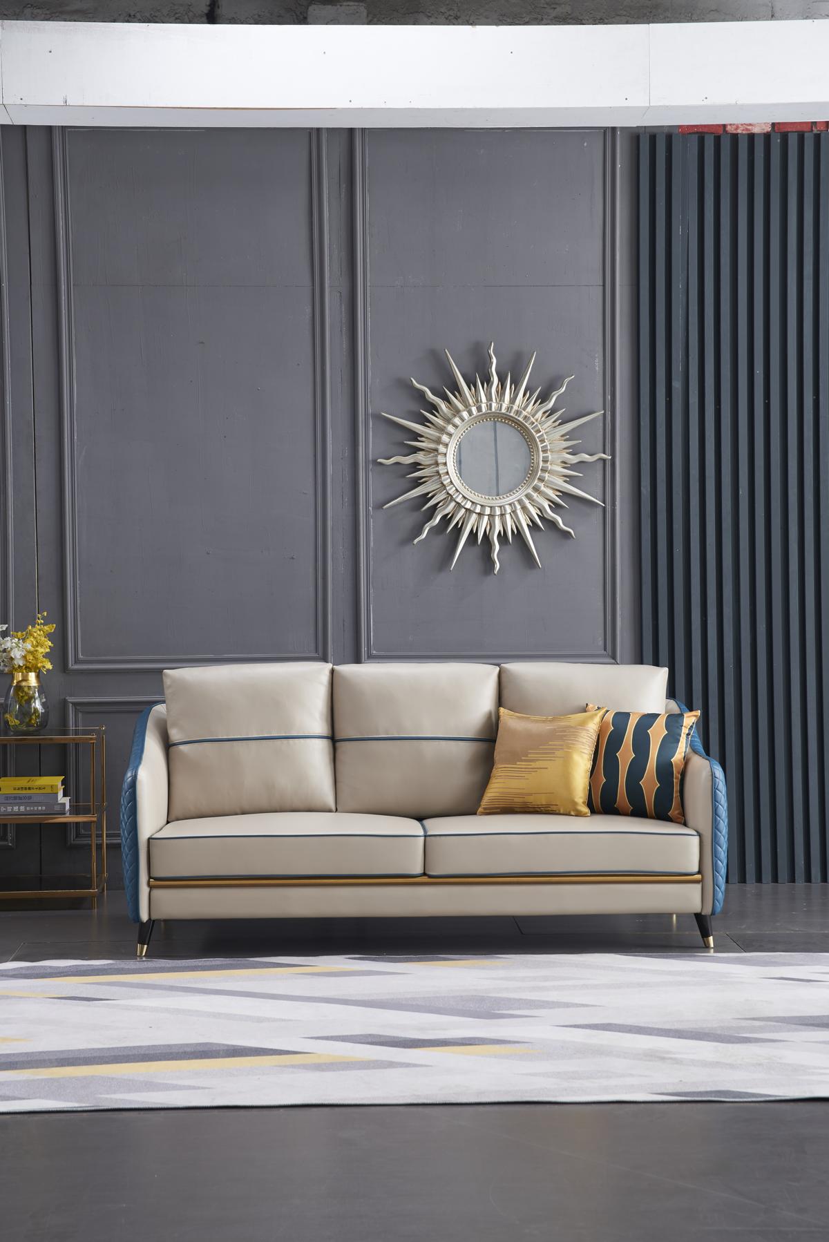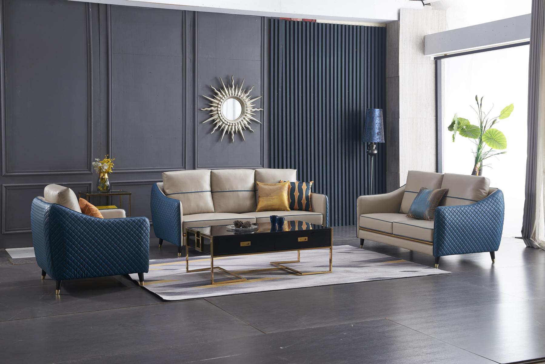 Vnitřní rám z pravého dřeva a žebrová podpůrná konstrukce zajistí pevnost a stabilitu produktu. Délka sedací plochy a pohodlná výška sezení (cca 56 cm hloubka sezení, 44 cm výška sezení) poskytnou maximální pohodlí během dlouhých večerů strávených v obývacím pokoji. Kromě toho přiložené konferenční stolky jsou ideální pro umístění nápojů, knih a dekorací, což z této soupravy dělá praktický i stylový doplněk pro váš domov.