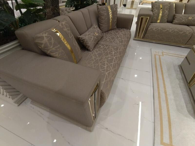 Moderní sedací souprava 3+3+1 sedák textilního křesla 3místná pohovka 3dílná sada design nový