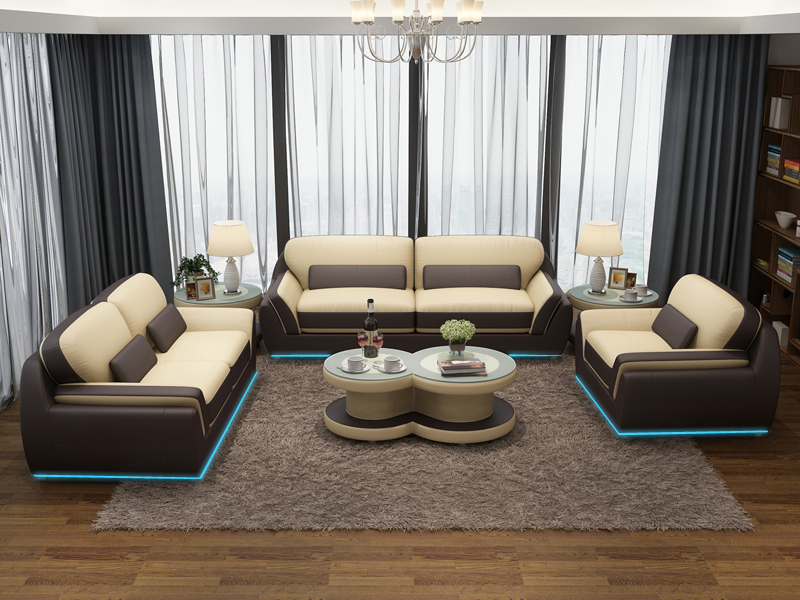 Kožená pohovka gauč sedací souprava Nová 3+2+1 sedadla sestava Design Moderní pohovka + USB je luxusním a moderním prvkem pro vaše obývací prostory. S jejím prémiovým koženým vláknitým materiálem (70% kůže / 30% polyester) a elegantním designem si získáte nejen pohodlné posezení, ale i stylový prvek do vašeho interiéru. Díky USB-Klik automatice s 3x zásuvkami budete mít snadný přístup k nabíjení elektronických zařízení přímo z pohovky.