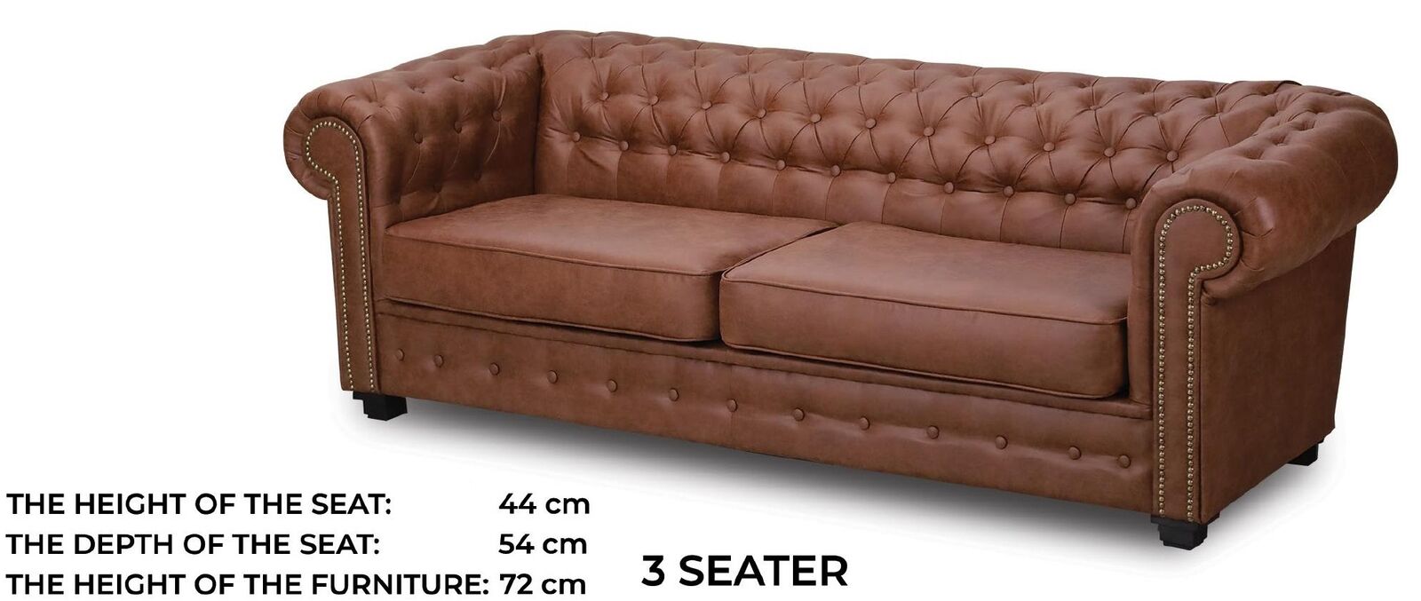 Vnitřní rám ze skutečného dřeva zajišťuje stabilitu a dlouhou životnost celé soupravy. Díky odolné látkové textilii je Sofá Chesterfield snadno udržovatelná a přináší do vašeho domova eleganci. Skvěle se hodí do obývacího pokoje, pracovny nebo knihovny, a dodá prostoru nádech luxusu. Večeře s rodinou, odpočinek s knihou nebo elegantní oslava – s touto sofou budete mít vždy stylové a pohodlné posezení.