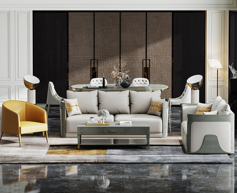 Noble šedá sedací souprava do obývacího pokoje 3+2 místná kůžená pohovka Exkluzivní nábytek