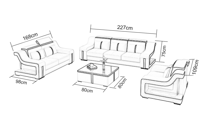 Návrhářská pohovka gauč 3+2 sedadla polstrovaný kůží Gauče velké sedací soupravy osvětlené
