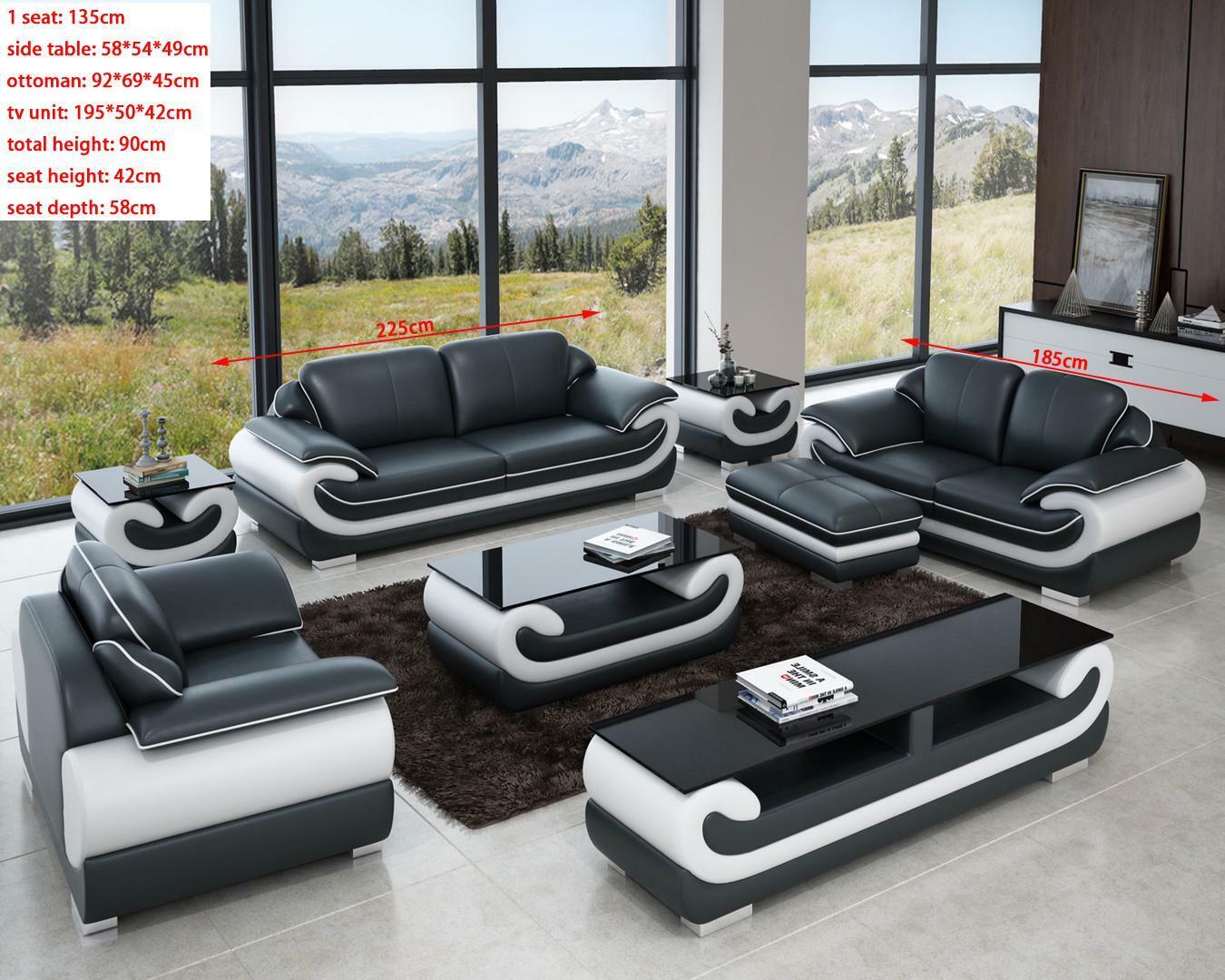 Pohovka z kože, obývací souprava 3+2, designová moderní sedací souprava xlnabytek.cz je exkluzivním kouskem nábytku pro váš obývací pokoj. Tato luxusní sedací souprava kombinuje eleganci s pohodlím a je vyrobena z prémiových kožených vláken (70% kůže / 30% polyester), což zajišťuje vysokou odolnost a trvanlivost. S rozkošnými rozměry 225 x 95 x 90 cm pro třísedadlovou část a 185 x 95 x 90 cm pro dvousedadlovou část, poskytuje dostatek prostoru pro relaxaci a pohodlí vaší rodiny a hostů.
