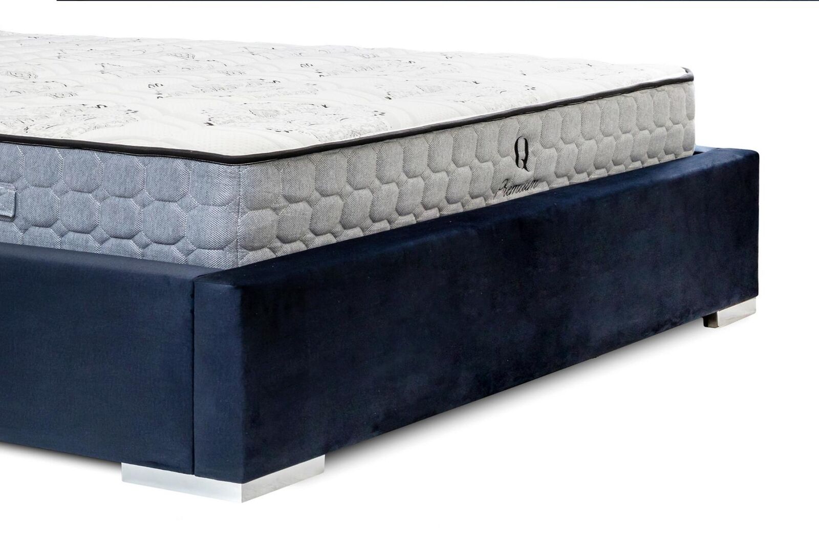 Postel Modrý Moderní Design Látka Polštář Ložnice Manželská postel Dřevo Elegantní Nový