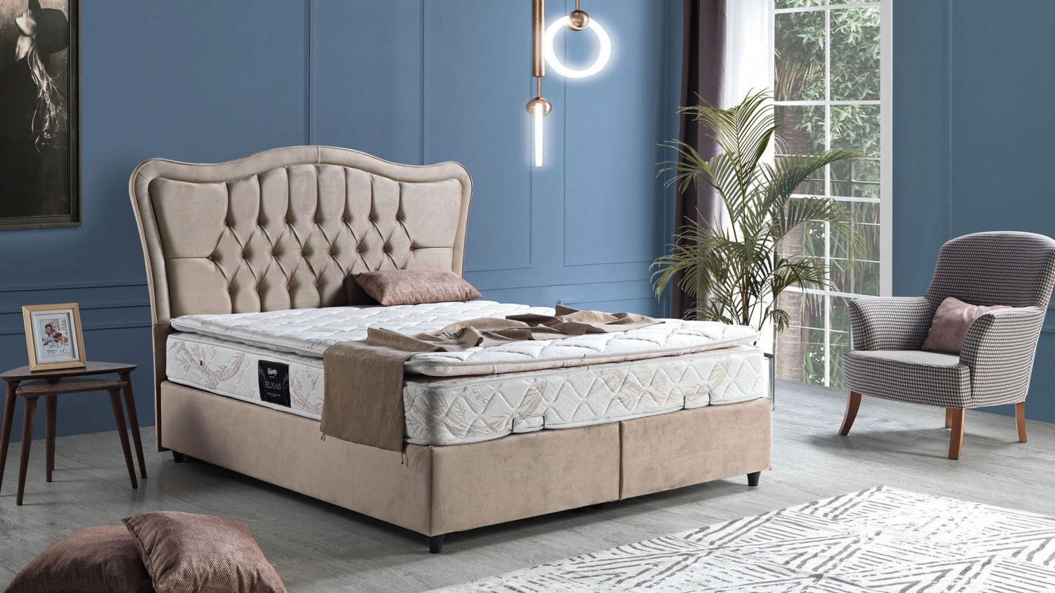 Postel Design Luxusní postele Potah Ložnice Nábytek Moderní Béžová 160x200