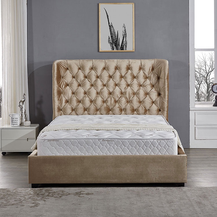 Bežová postel Chesterfield Luxusní ložnice Design postele
