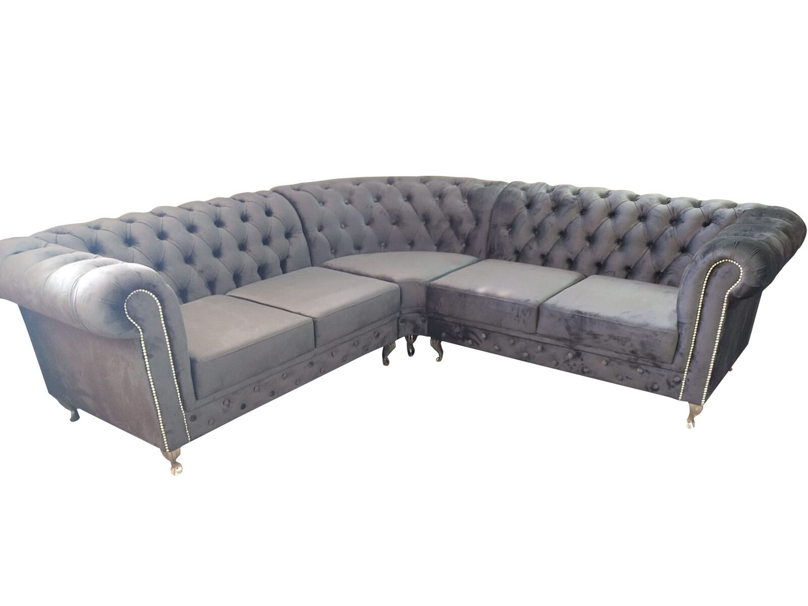 Chesterfield rohová sedací souprava L-formy, pohovka, design čalounění, textil, pohovkový roh