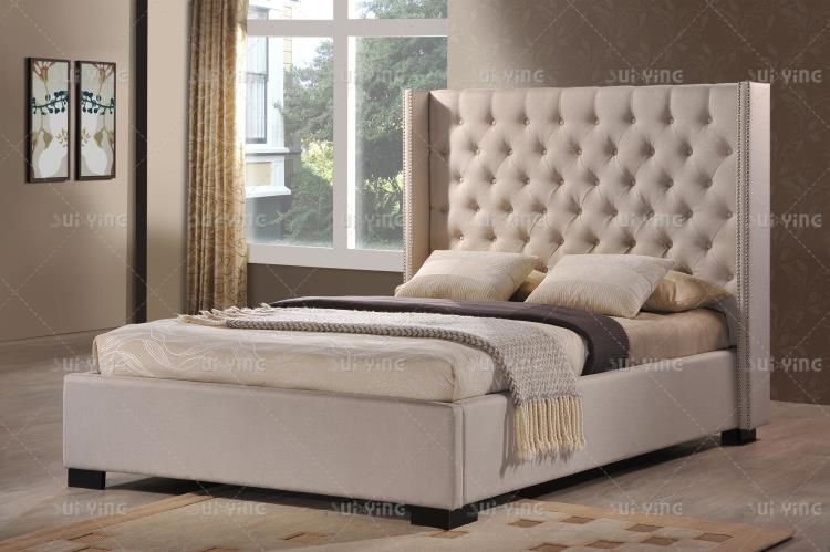 Chesterfield ložnice s manželskou postelí, designová luxusní postel z kůže pro hotel.