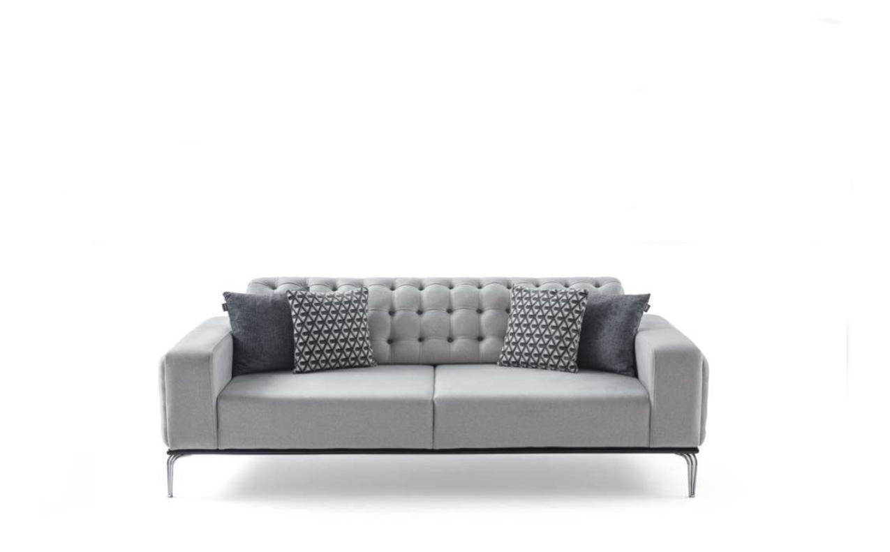 Chesterfield Šedá sedací souprava obývací pokoj Pohovky Třísedadlový+křeslo je elegantní a pohodlná sedací souprava, která přinese luxusní atmosféru do vašeho obývacího pokoje. Souprava obsahuje třísedadlovou pohovku a křeslo, které poskytnou dostatek prostoru pro pohodlné posezení. Světle šedý odstín a klasický chesterfieldský design dodají vašemu interiéru šarm a eleganci. Kombinace dřeva, textilu a nerezové oceli zajišťuje odolnost a dlouhou životnost produktu.