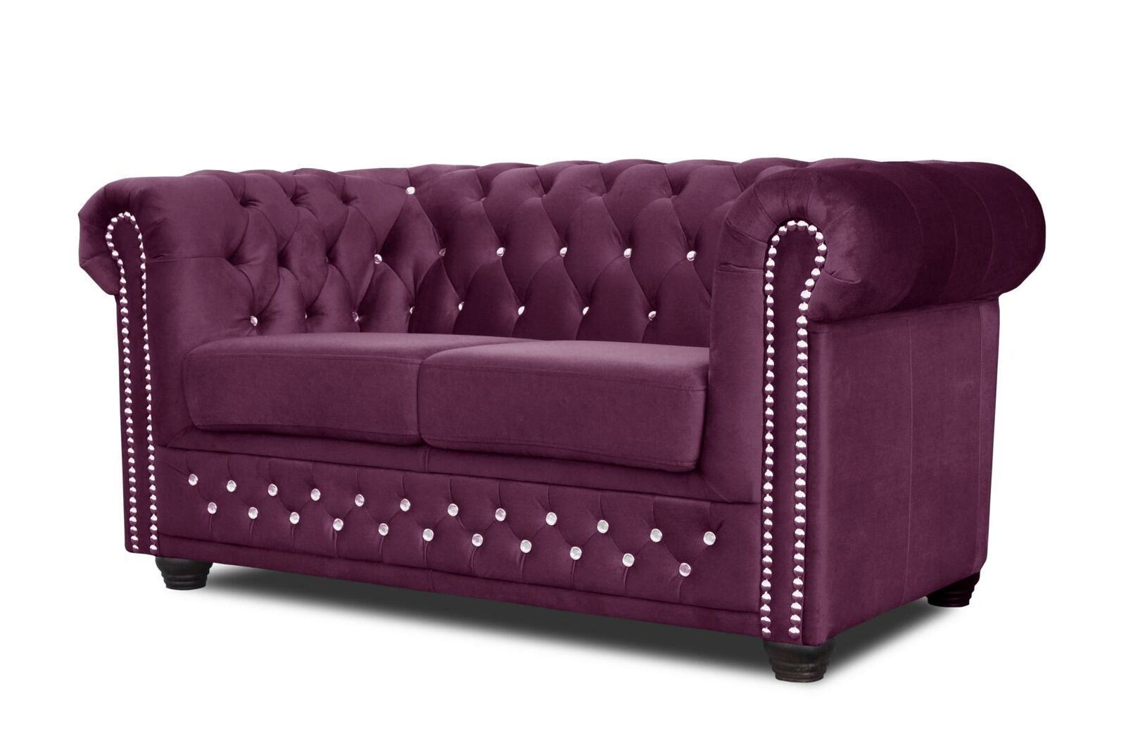 Chesterfield textilní pohovka s čalouněním 2místná lila lůžka pohovky pohovky z látky.