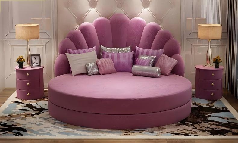Elegantní kulatá bílá postel design mušle je dokonalým vyjádřením moderního luxusu, který pozvedne vaši ložnici na úroveň prvotřídního designu. Čalounění v jemné fialovo-stříbrné textilii harmonicky ladí s bílým rámem, čímž vytváří jedinečný a sofistikovaný vzhled. Tato postel nejenže nabízí maximální komfort, ale i estetickou dokonalost, která podtrhuje vaši osobnost a životní styl. S více než dvacetiletou tradicí v oblasti luxusního nábytku přinášíme široký výběr prémiových designů, které dodají vašemu domovu exkluzivní atmosféru. Elegantní kulatá postel je tak nejen nábytkem, ale i uměleckým dílem, které promění váš prostor na oázu elegance.