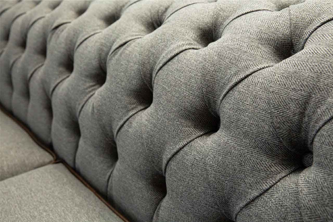 Luxus třísedák moderní šedá sedací souprava Nábytek látkový textilní polštáře je elegantní a moderní sedací souprava, která přináší do vašeho interiéru luxusní atmosféru. S rozměry přibližně 230 x 80 x 90 cm nabízí sofa 3 sedadla dostatek prostoru pro pohodlné sezení a relaxaci. Materiálová kombinace textilu s kůží a dřeva dodává nábytku elegantní vzhled a dlouhou životnost. Možnost výběru z různých skupin materiálů, včetně luxusní italské hovězí kůže, umožňuje personalizovat sedací soupravu podle vašich preferencí.