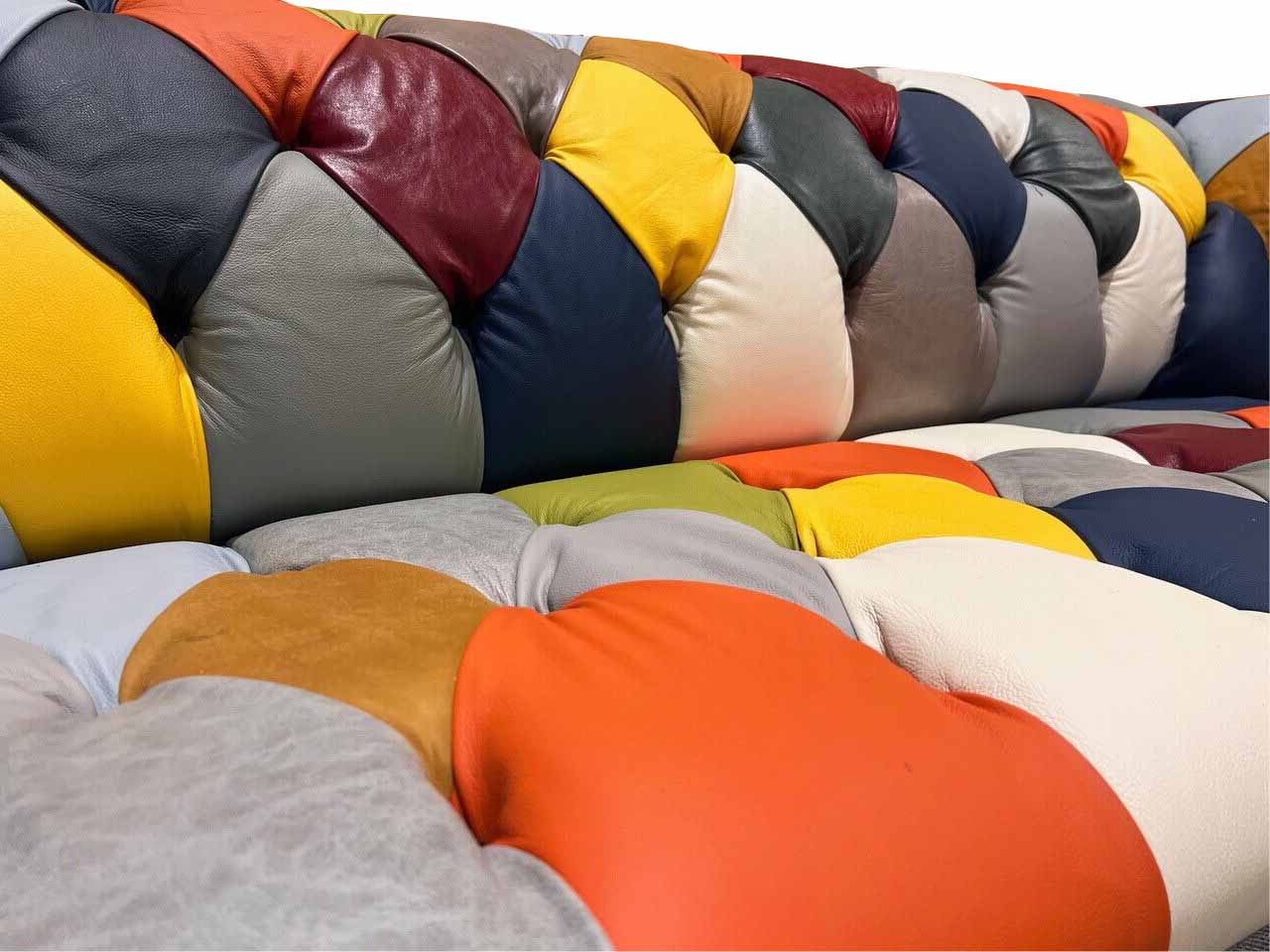 Chesterfield 3vajíčkový textilní designový gauč s moderním potahem, nový.