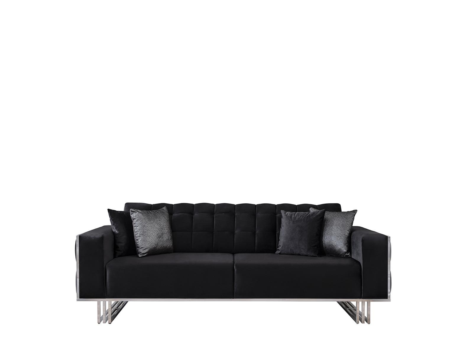 Využijte černou barvu potahu pro stylové zařízení vašeho interiéru nebo zkombinujte s jinými barvami pro vytvoření unikátního designu. Tato sedačka je ideální jak pro relaxaci při sledování televize, tak i pro posezení s rodinou nebo hosty během setkání. Přidejte do svého domova tuto moderní a pohodlnou třísedák sedačku a dopřejte si maximální komfort a eleganci ve vašem životním prostoru.