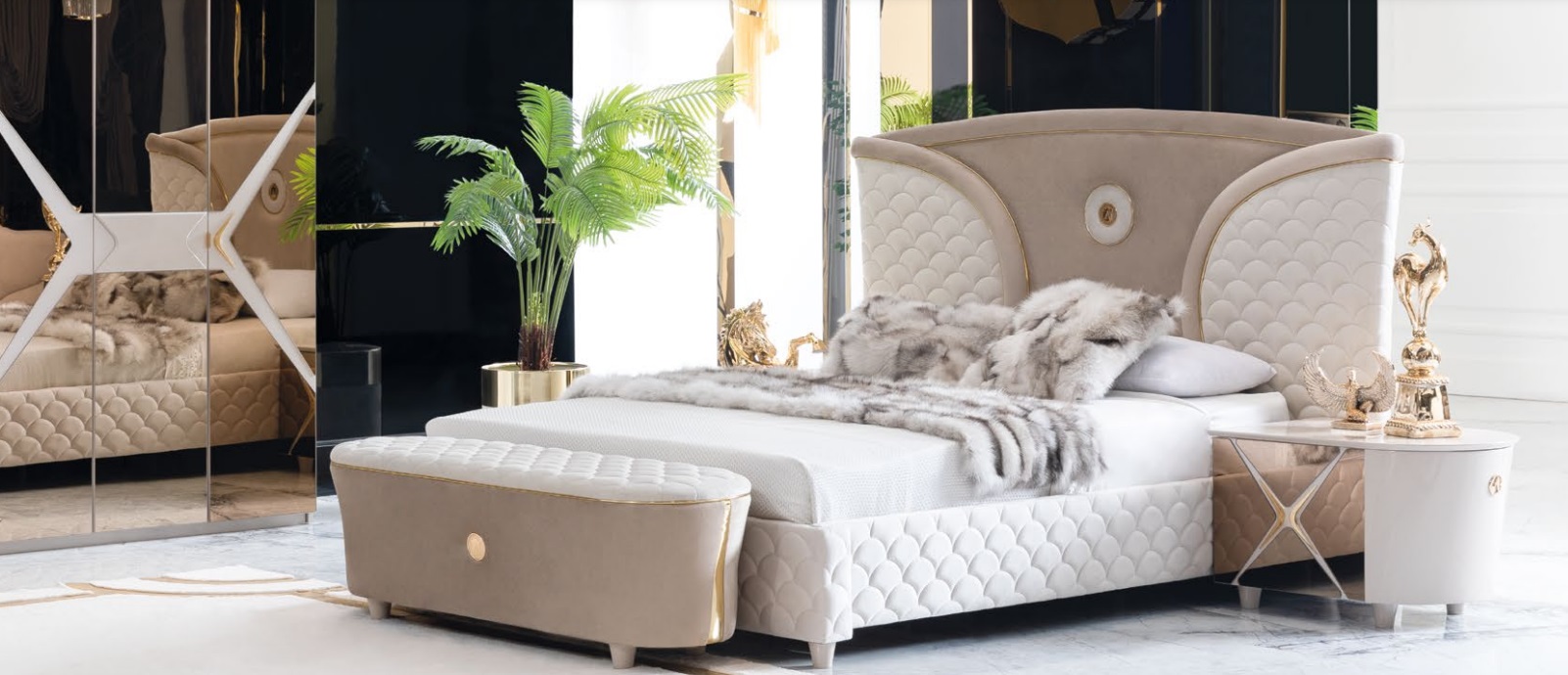 Manželská postel Modernní postelový rám Sada postelí 3 kusy Ložní stůl