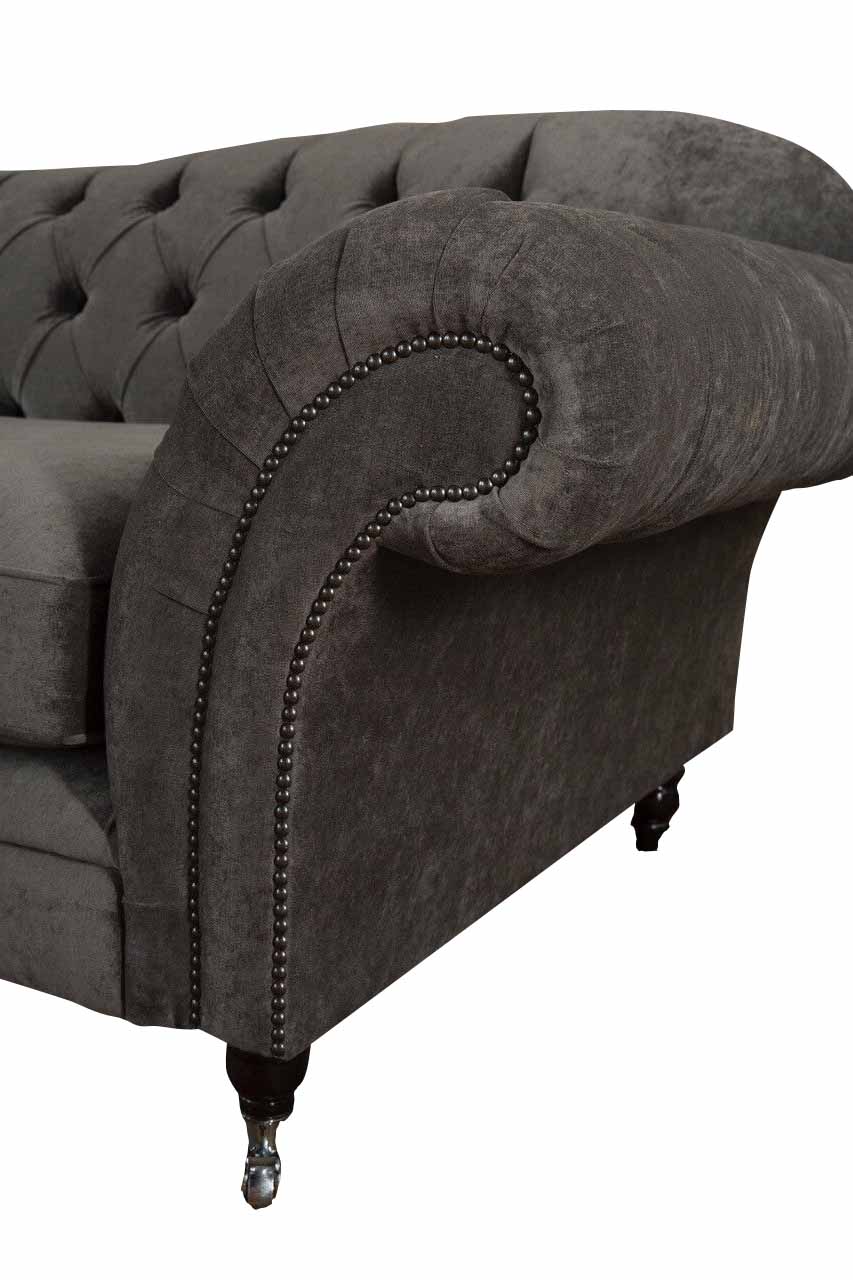 Sofa Chesterfield, textilní sofa, třísedadlová pohovka, sofa v obývacím pokoji.