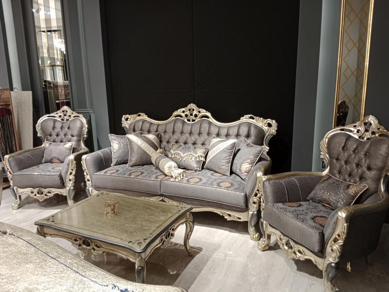 Elegantní obývací pokoj Chesterfield set sedací soupravy 3+1+1 sedadla je skvělým doplňkem pro vaší obývací pokoj. Tento luxusní nábytek nabízí pohodlnou pohovku se třemi sedadly a dvěma křesly ve stejném designu. S elegancí a stylém Chesterfield vytvoří váš obývací pokoj útulné prostředí pro relaxaci a setkávání s přáteli a rodinou. Díky kvalitnímu materiálu - dřevu s textilií, je tento set nejenovný, ale také odolný a snadno udržovatelný.