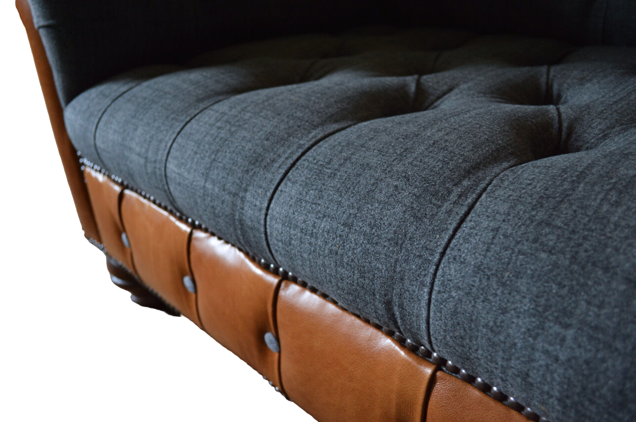 Křeslo 1místný gauč potahu design luxusní látkové sedačky Chesterfield textilní je elegantní a luxusní exemplář nábytku do vašeho obývacího pokoje. S rozměry cca 130 x 80 x 90 cm nabízí dostatek prostoru pro pohodlné posezení. Výška sedáku cca 42 cm a hloubka sedáku cca 52 cm zajišťují optimální komfort a oporu pro vaše tělo. Tento křeslo kombinuje kvalitní textil s umělou kůží, což zaručuje odolnost a snadnou údržbu. Díky volitelným barvám a materiálům si můžete vybrat ten, který nejlépe ladí s vaším interiérem.