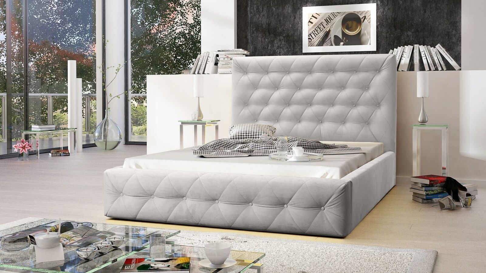 ModernWoodBed, Designové nábytek, elegantní ložnice, manželská postel, nový nábytek.