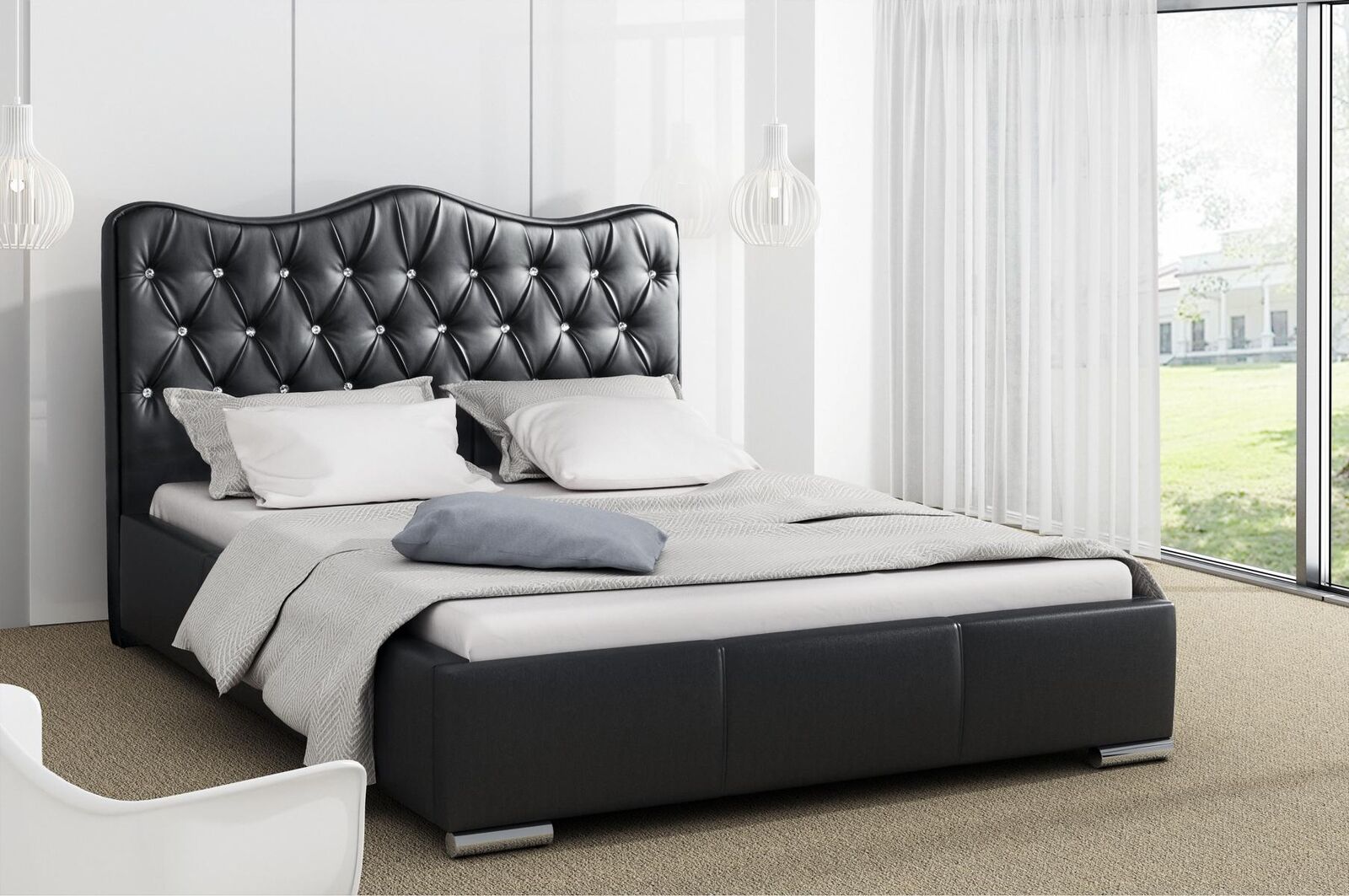 Rám postele Postele Manželská postel Moderní postel Umělá kůže Polstrovaná postel Manželská postel Černá