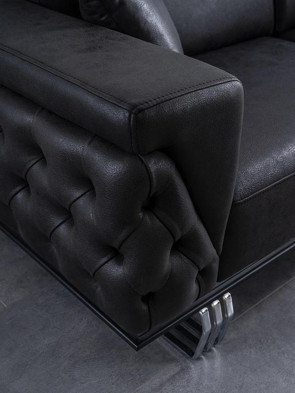 Tato moderní souprava sedadel je ideální pro každý domov, kde je kladen důraz na kvalitu, styl a pohodlí. Barva: Černá barva přidává elegance a sofistikovanost do vašeho interiéru, zatímco umělá kůže poskytuje snadnou údržbu a dlouhou životnost. Každé sedadlo nabízí dostatek prostoru a ergonomický design, který zlepšuje vzhled a komfort vaší obývací či pracovní místnosti. S touto moderní a luxusní soupravou sedadel, Vaše prostředí získá nový rozměr elegance a pohodlí.