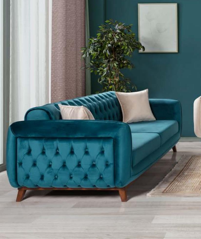 Sofa Set 3+3+1 potahová pohovka látkový obývací pokoj Chesterfield 3 dílný interiér je elegantní a pohodlná sada pohovek pro váš obývací pokoj. Tento sada obsahuje tří sedadlovou pohovku, dvě křesla a jedno křeslo, které zajistí dostatek prostoru pro celou rodinu nebo hosty. Sedačka má moderní design Chesterfield a je vyrobena z kvalitního textilu a dřeva, které zajišťují stabilitu a odolnost. Díky rozměrům cca 215 x 96 x 75 cm nabízí dostatek sedací plochy a pohodlí pro dlouhé posezení.